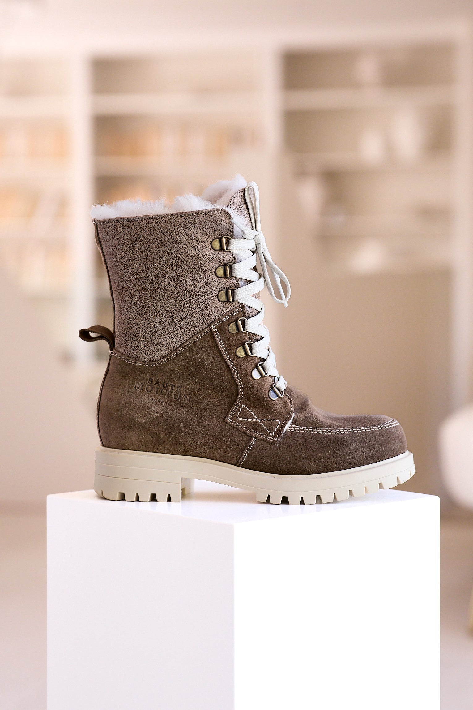 Saute-Mouton officially started its activities on April 1st 1998 under the initiative and guidance of Jacinthe Bergeron. Inspired by her father, the president and owner of the company aims to offer a high-quality product at a competitive price. But Saute-Mouton is not only about her, it's the work of people passionate about shoes : 30 craftspeople share the tasks of cutting, preparing, assembling, finishing and shipping your next pair of boots.