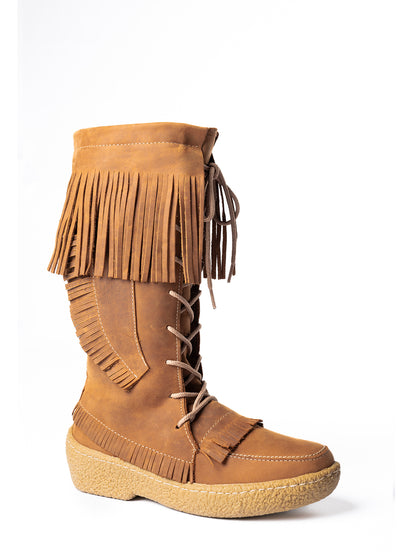 These women's winter moccasins boots are (style 8103) extremely warm and comfortable. They are Canadian handmade from genuine leather on the exterior. The footbed and shaft of these men's winter mukluk boots are lined with genuine 530 g wool insulation and the exterior is leather in either a black, ice, grey or peanut colour. They have a durable wasak thermoplastic sole with a slight heel. Please note, these mukluks boots should be treated with a waterproofing spray to help keep the leather clean and protected. We carry women's sizes 6-11 and they fit the same as your regular shoe size. They do not come in half sizes, if you wear a half size order down to the nearest full size. (8 Β½ or size 8).
